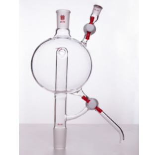 | 内容 | 【产品说明】 该装置应与冷凝管(上面)及两口球瓶(下面)相连接。右上侧为带四氟节门(4mm)的14/20磨口,用于注射器取液体,右下侧为出口(不带磨口),用于大量取液。 配件: