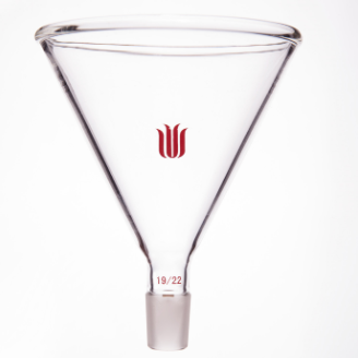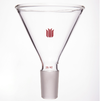 厚壁带磨口漏斗,壁厚在2mm以上漏斗壁的倾斜度为60°。