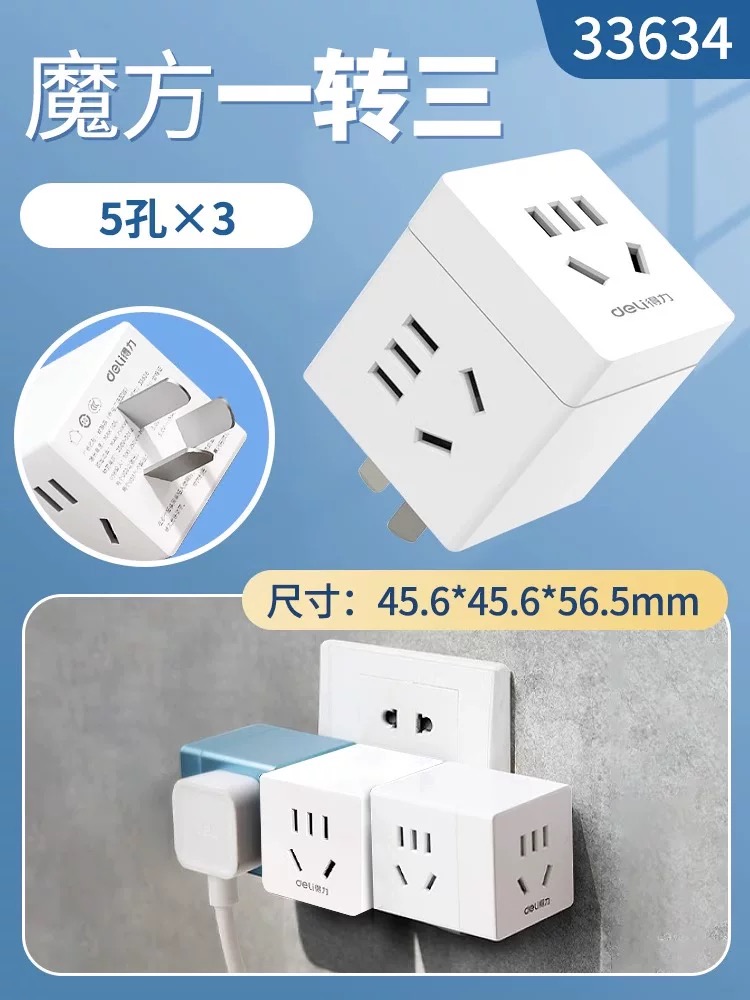 礼品-得力魔方插座转换器魔方一转三5孔*3