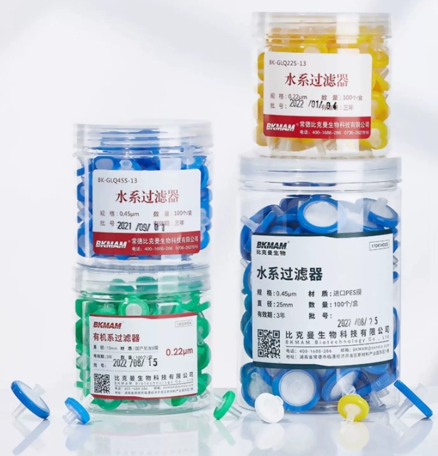 一次性水系针式过滤器 | 进口PES膜,Φ25mm,0.45um;100个/盒,Φ13mm,0.45um;100个/盒,Φ25mm,0.22um;100个/盒,Φ13mm,0.22um;100个/盒 |